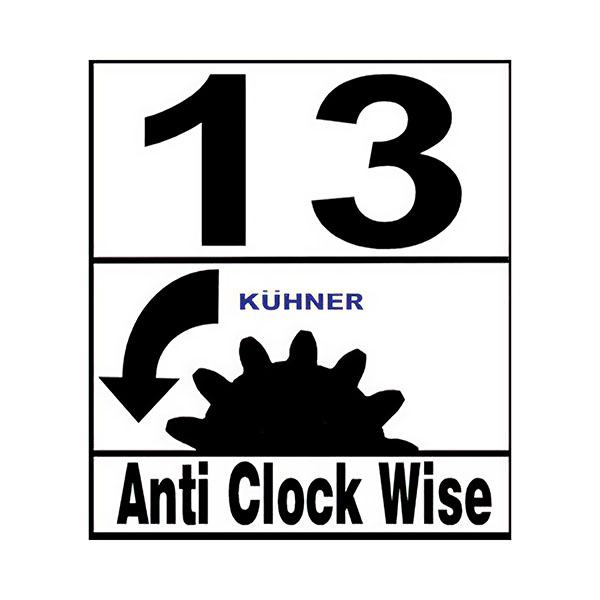 - Sens de rotation: Rotation dans le sens inverse des aiguilles d'une montre